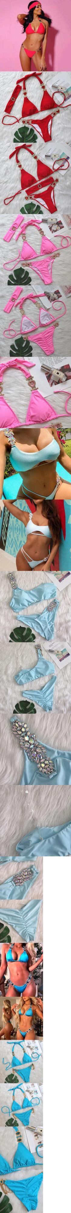 送料無料 ホルターラインストーンダイヤモンドビキニ女性水着ビキニメタルチェーン水着二枚ビキニセット水着水泳女性 AE88976661149659377