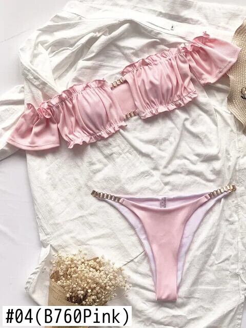 送料無料 セクシーなフリルフリルオフショルダービキニ女性水着水着ツーピースビキニセットリブ水着水泳ビーチウェア AE88976698702959284