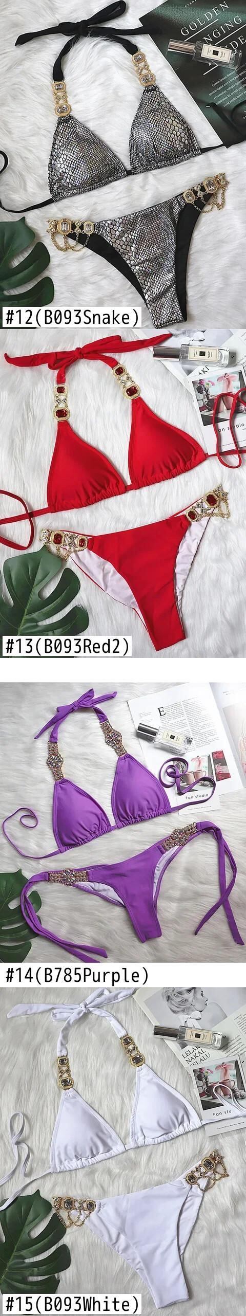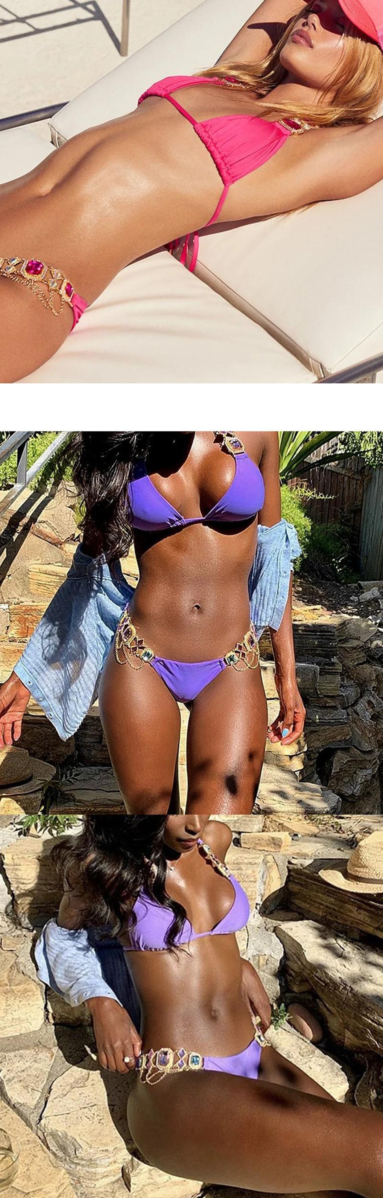 送料無料 2024 光沢のあるラインストーンビキニダイヤモンド水着女性金属チェーン水着二枚ビキニセットホルター水着水泳 AE88976655001886690