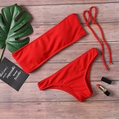 送料無料 固体ビキニ水着女性のビーチスーツ 2019 ローウエストセクシーなオフショルダー水着女性のパッド入りブラジャー水着 ソリッドカラー AE126656556695697345108